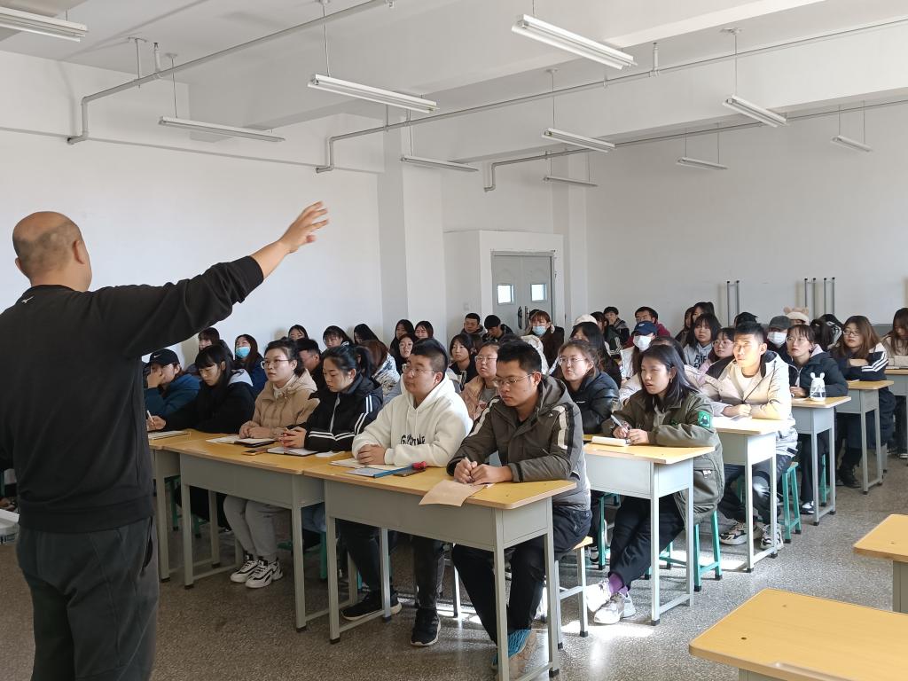 11月22日,财会系直属党支部在崇德楼阶梯601教室举办主题党课。财会系直属党支部纪检委员张文斌主讲。入党积极分子、申请入党学生和和各班学生干部近百人共同聆听。