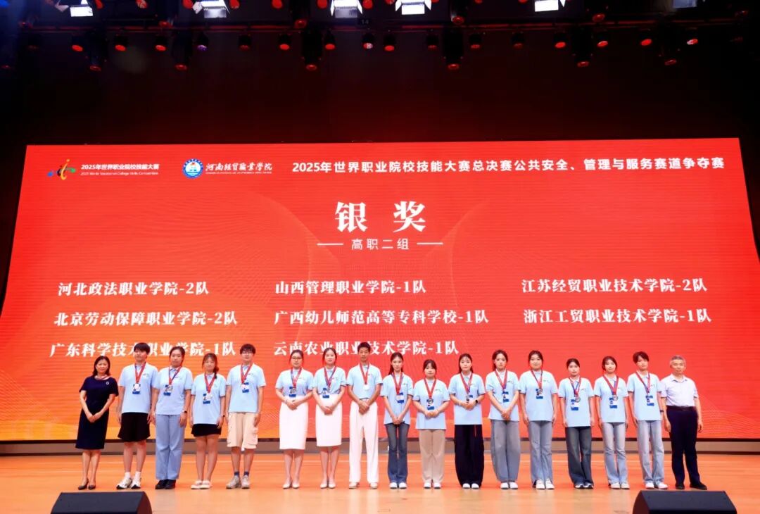 8月25日——8月29日,2025年世界职业院校技能大赛总决赛公共安全、管理与服务赛道争夺赛在河南郑州河南经贸职业学院举办。共有来自全国 30 个省(自治区、直辖市)的 126 支高职院校参赛队、51 支中职院校参赛队,共计 177 支队伍 1300 余名选手参赛同台竞技,米乐管理与服务系人力资源管理专业参赛团队靳荣秋、翟芷晗、原宇薇、刘艳霞,指导教师孙香云、杨美蓉,获高职组银奖,取得了米乐在此赛道上历史性的突破。