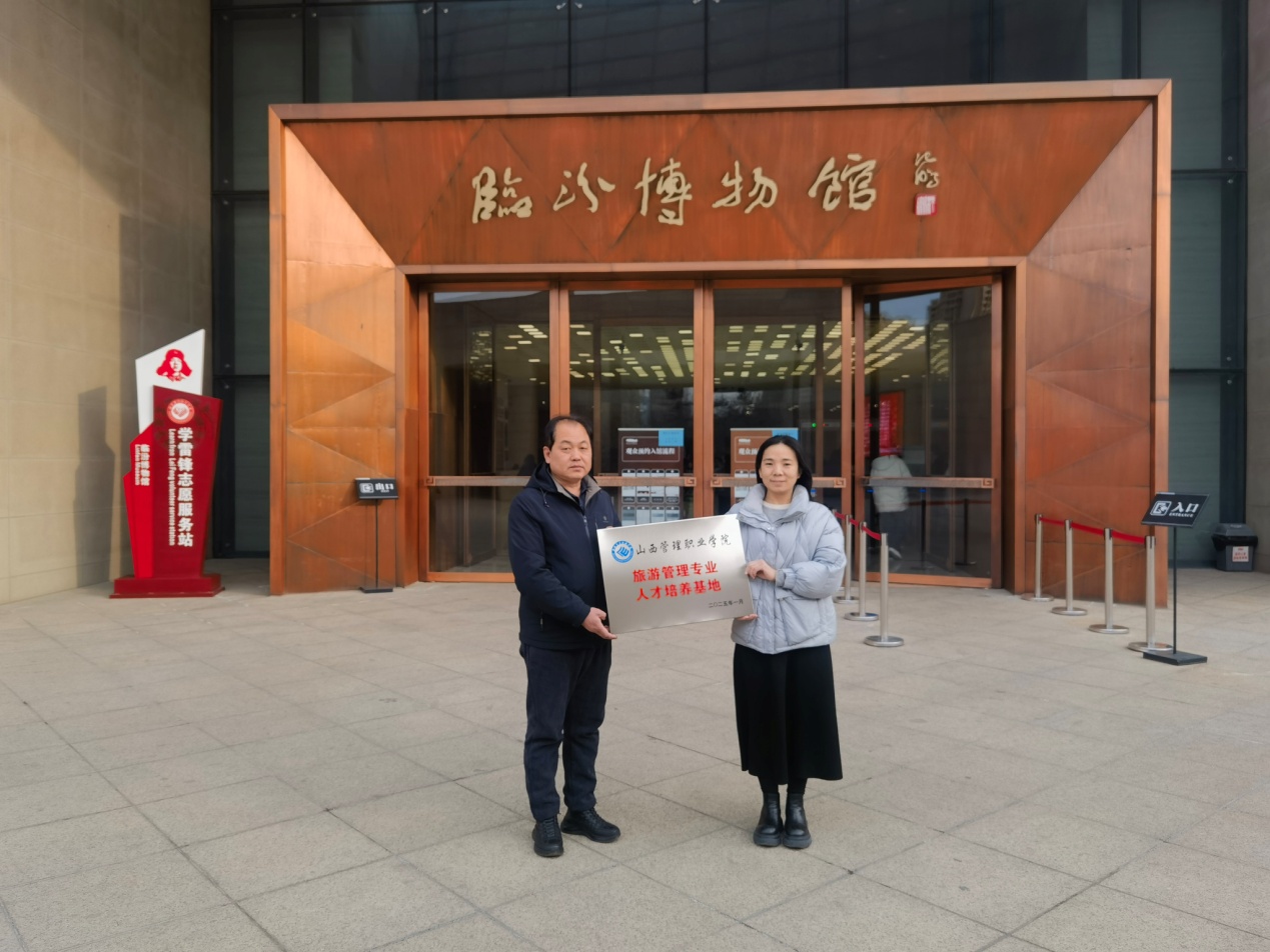 2025年1月10日,管理与服务系书记秦晶丽、系主任卫云芳赴临汾市博物馆开展“旅游管理专业人才培养基地”共建活动并授牌。临汾市博物馆办公室主任赵军芳与公众服务科科长杨跃明和部分讲解员参加了此次活动。