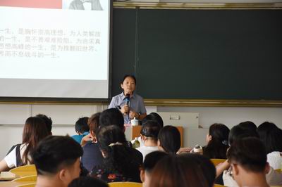 6月15日下午,学院在综合楼阶梯二教室,开展“学习新思想千万师生同上一堂课的活动”。山西师范大学马克思主义学院教授赵改萍,为全院师生作题为《坚持马克思主义指导做民族复兴时代新人》的专题授课。党委委员、副院长郭敬仁主持。全体教职员工、学生入党积极分子和学团干部共同聆听。
