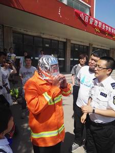 讲座后,保卫科在教学楼前广场进行消防演练,模拟了火灾疏散和初起火灾灭火器的实际操作。