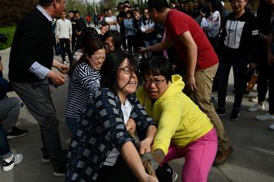 四月的校园,春意盎然,百花竟放。4月10日下午4时,教学楼前广场,红旗招展,彩旗飘飘,“加油!加油!……”一浪高过一浪的助威声响彻天空。米乐2018年教职工春季拔河比赛正在这里紧张进行。院领导贾二元、岳澎、马联合、李强、郭敬仁、宋沧莅临现场加油助威。