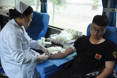 “捐一份热血,献一片爱心”“献血对自身有益,又能挽救他人生命。”李树森同学说,“希望今天我们献出的爱心和鲜血,能挽救更多宝贵的生命,让更多的人得到帮助。”