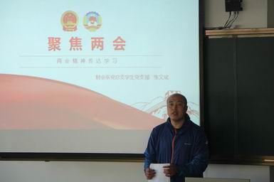 3月27日,财会系党总支党课培训在综合楼阶梯一教室举行,学生党支部书记张文斌上题为《聚焦两会》的党课,全系入党积极分子和优秀学生干部近百人参加。