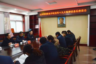 座谈会上,宣讲团分别与尉庄乡和关王庙乡的党员干部以及村党支部书记等进行交流,宣传十九大关于振兴乡村经济、脱贫攻坚的战略部署、政策方针,了解基层学习宣传贯彻十九大精神的情况,了解脱贫攻坚的做法举措、疑难困惑,共同探寻解决问题新路径、新办法。宋沧表示,扶贫更要扶志扶智,学院将充分利用发挥专业特色和教育优势,在农村劳动力转移的教育培训、产品的市场推广营销、信息技术教育等方面,给予帮助扶持,在扶贫攻坚战中作出应有的贡献。亲切的座谈中,基层工作的繁杂艰辛和其中的酸甜苦辣使大家感同身受,脱贫攻坚一线党员干部的饱满的精神状态、昂扬的斗志、务实的工作作风、乐观的生活态度深深感染打动着每一个人。大家纷纷表示,在党的十九大精神的指引下,在以习近平同志为核心的党中央的坚强领导下,伟大的中华儿女,必将以坚定的意志和必胜的信念,彻底打赢这场举世瞩目的脱贫攻坚战。