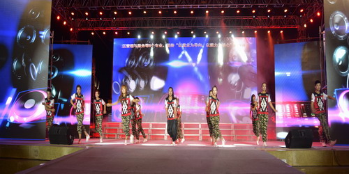 晚8时,教师百人大合唱拉开了晚会的序幕。《祝福祖国》《四渡赤水出奇兵》《突破封锁线》等红色经典歌曲的精彩演绎,气势恢宏,给观众带来了强烈的艺术震撼。11个精心准备的文艺节目轮番上演,有合唱、独唱、民族舞、现代舞、诗朗诵、器乐演奏、才艺表演等,全部由学院师生自编自演,形式多样,精彩纷呈。小提琴演奏《打虎上山》,抒发了革命人的豪情壮志和坚定的必胜信念。经典诗朗诵《我的祖国》,饱含深情,表达了师生对党的无限热爱和对祖国的深深祝福。苍凉大漠的背景映衬下,极具异域风情的《埃及舞娘》使观众如临其境,展示了当代大学生的青春与激情。独具匠心的跳绳表演《跃动青春》,再现了学院跳绳队在省赛中勇夺桂冠的风采。《才艺大放送》构思新颖,相继呈现了器乐、舞蹈、书法、绘画等精湛的才艺表演,给观众带来了一个又一个惊喜,淋漓尽致地展示了学院人才培养的丰硕成果和师生的才艺风采,赢得了台下长时间的热烈掌声。