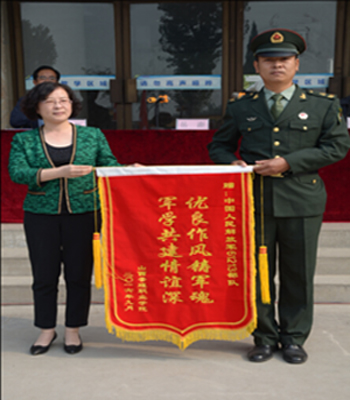 汇报表演结束后,在总结表彰大会上,岳澎代表学院向为军训工作付出辛勤汗水的教官、老师表示崇高的敬意和衷心地感谢,对十天军训取得的成绩给予充分肯定。她指出,通过军训同学们升华了思想、锻炼了作风、磨练了意志、强健了体魄,为三年大学生活迈出了坚实的第一步。她希望同学们把军训中培养起来的顽强意志、良好品格和优良作风发扬光大,增强修身立德的自觉性;把军训中培养起来的组织纪律观念和团结协作精神发扬光大,增强维护校园秩序、构建和谐师生关系、构建和谐班级与和谐校园的自觉性;把军训中培养起来的力争上游、不怕艰苦、顽强拼搏的精神发扬光大,增强勤奋学习、刻苦钻研的自觉性;把军训中激发起来的爱国热忱发扬光大,增强报效祖国、服务人民的自觉性,主动地将个人的青春梦汇入中国梦的伟大洪流,把自己锤炼成为热爱祖国、乐于奉献、敢于担当的大学生,以优异的成绩报效祖国、奉献社会。
