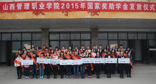 仪式在庄严的国歌声中拉开帷幕。学生处处长张晋升宣读了《关于发放2014—2015学年国家奖学金和国家励志奖学金的决定》。学院领导为“国家奖学金”获得者和“国家励志奖学金”获得者颁发了荣誉证书和奖学金,并向获得国家助学金的学生发放了助学金。商贸系2014级市场营销专业学生常健康作为“国家奖学金”获奖代表、财会系2014级会计专业学生裴璐作为受助学生代表分别发言,她们表示要铭记党和政府的关怀,刻苦学习,自强自立,励志成才,报效祖国。