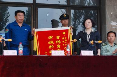9月29日上午,米乐2015级新生军训汇报表演暨总结表彰大会在教学楼前广场隆重举行。院长岳澎出席大会并讲话,代表学院向军训部队赠送了锦旗。副院长马联合、闫建辉出席大会。大会由院党委副书记杨峰主持。
