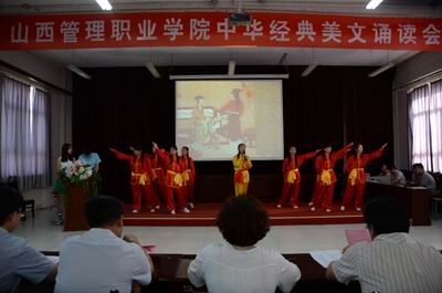 “人之初,性本善,性相近,习相远……”,天真活泼的张博然小朋友身着汉服,以纯真稚嫩的童声,拉开了诵读会的帷幕。10名女同学一身戎装,诵演《木兰诗》,生动再现了巾帼英雄花木兰金戈铁马的飒爽英姿和理鬓贴黄的楚楚情态,歌颂了中国女性的伟大、坚韧与温情。范仲淹的千古名句“先天下之忧而忧,后天下之乐而乐”的慷慨激昂咏诵,使拳拳爱国之心、精忠报国之志,深深地感染激励着每一个师生。男女声对诵的《钗头凤》,将陆游和唐婉二人凄楚的爱情悲剧演绎得荡气回肠,催人泪下。“轻轻的我走了,正如我轻轻的来;我轻轻的招手,作别西天的云彩……”,一袭青袍加白色长围巾,将徐志摩《再别康桥》如画似梦的美妙意境,表现得真挚、浓郁、隽永。张亚梅老师诵读的《登高》、商贸系党支部书记许聪义诵读的《我爱这土地》,将现场氛围推向了高潮,赢得阵阵掌声。师生们通过“诵”、“演”,并借用视频、PPT演示和背景音乐,将《劝学》、《雨巷》、《致橡树》、《相信未来》等一批优秀传统经典诗文演绎得多姿多彩,完美地展现了中华经典美文博大精深的丰富内涵和艺术魅力。现场师生沉浸在浓郁的艺术氛围中,静心品味,掌声不断。诵读会在《明月几时有》的深情歌声中落下帷幕。