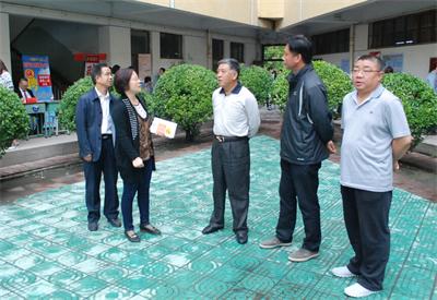 院长岳澎(左二)、临汾市人社局副局长朱丽明(左三)在招聘会现场