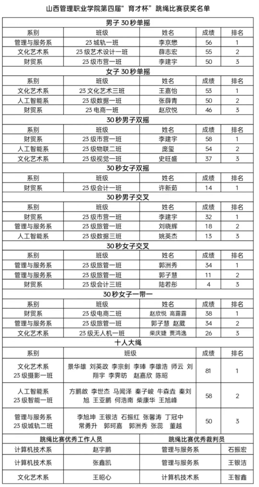 6月19日,学院“育才杯”系列比赛历时一个月圆满收官。本届“育才杯”系列比赛有五人制篮球、跳绳、乒乓球三项比赛。
