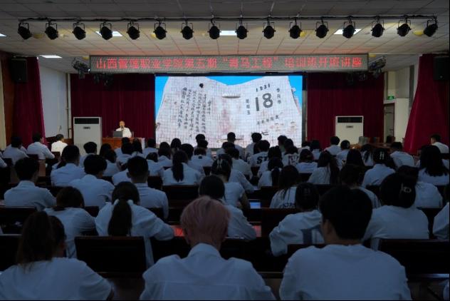 开班典礼在国际歌激昂的旋律中圆满结束。随后院团委书记张文斌为全体学员讲授开班第一课《勿忘国耻 振兴中华》。他以生动的语言和丰富的史料,将九一八事变那段沉重的历史画卷缓缓展开。大量的图片、影像资料,让在场学员深刻感受到了当时国家所面临的巨大危机和人民所遭受的苦难。他强调了九一八事变的历史意义和现实启示,并指出它不仅是中华民族的国耻日,更是激励我们不断前进的动力源泉。他告诫同学们要铭记历史,不忘国耻,珍惜来之不易的和平。同时,要以史为鉴,努力奋斗,为实现中华民族伟大复兴贡献自己的力量。