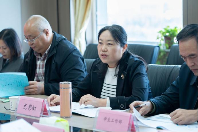 副院长尤彩虹对现代产业学院未来的工作提出几点希望要求:要充分认识考核工作重要性和必要性;对照校企合作管理办法,坚持全面、客观、公正的考核原则,采取听取汇报、查阅资料、实地考察等多种方式进行考核;加强现代产业学院与校企合作办、各系部的沟通协调。