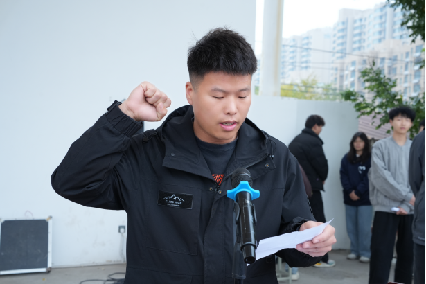 院党委副书记丁建业致辞。他指出,此次活动是深化和谐校园、清廉学校建设的有效途径,通过营造具有时代特征、校园特色的体育文化氛围,发挥社团育人功能,打造特色的社团活动,促进大学生德智体美劳全面发展,是推动健康中国战略在校园落地见效 的积极实践。希望同学们在阳光下奔跑、在赛场上拼搏,用每一次冲刺、每一滴汗水,去感受青春的律动。在社团活动中,拥抱快乐,收获成长!让梦想在青春的舞台上绽放年轻的光彩。