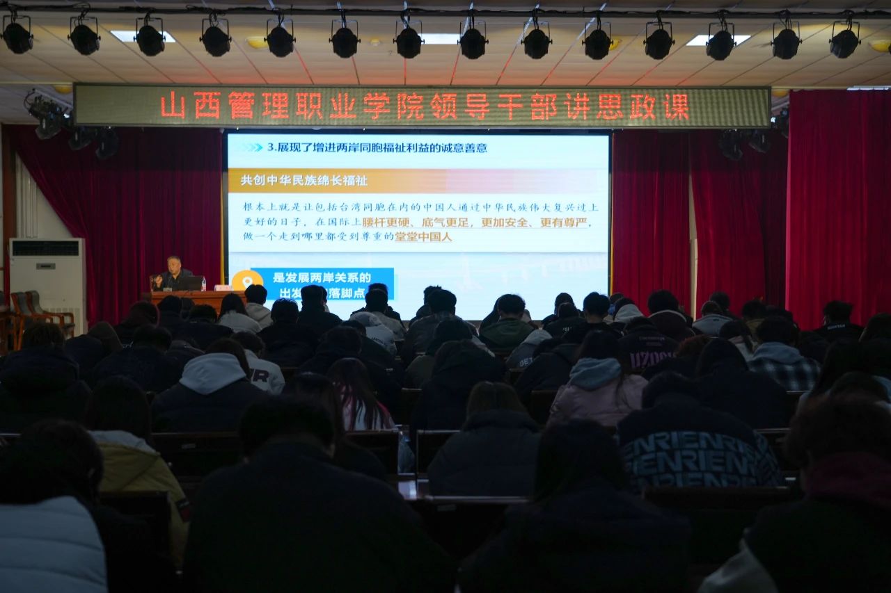 12月12日下午,院党委委员、副院长宋沧以《坚定前行谋统一、续写民族新辉煌》为题,在崇德楼三层报告厅为文化艺术系学生作形势与政策专题讲座。