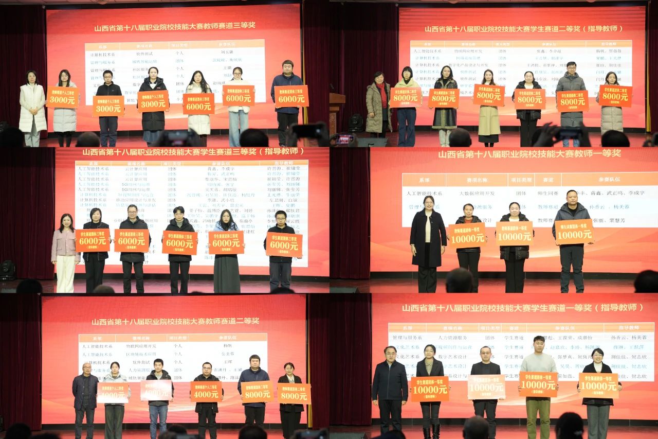 大会伊始,赵瑞婷部长介绍了出席表彰大会的领导,并简要回顾了学院参加山西省第十八届职业院校技能大赛的整体情况。学院高度重视本届大赛,师生积极参赛。这不仅是一场技能的较量,更是对学院专业技能教育成果的全面检验,充分展现了师生们的团队协作精神、创新能力与职业素养。