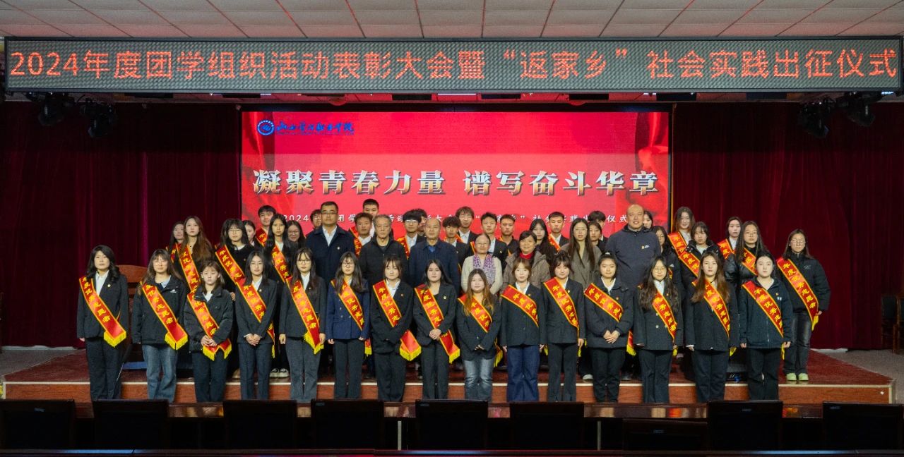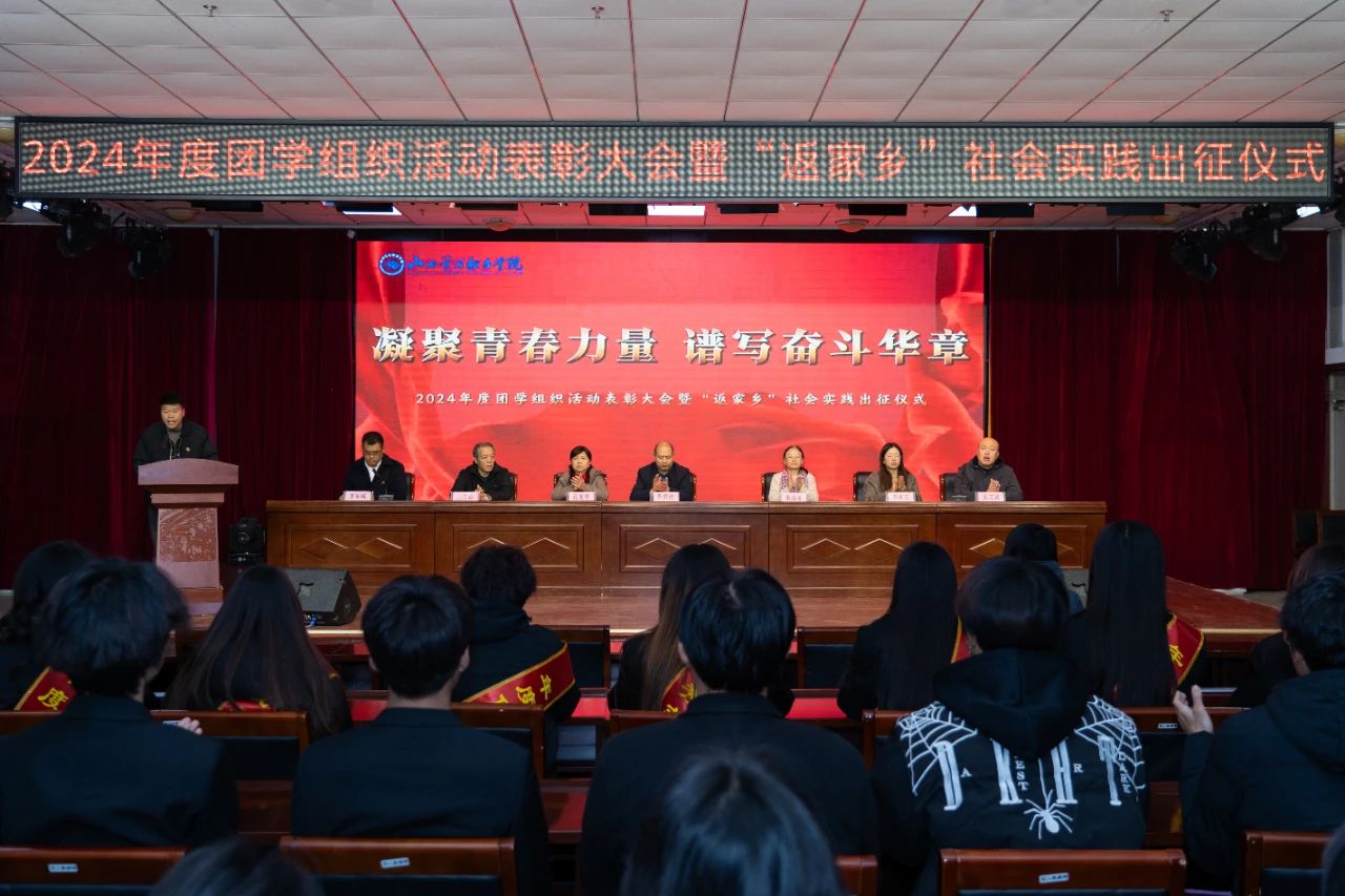 12月25日中午,2024年度团学组织活动表彰大会暨“返家乡”社会实践出征仪式,在崇德楼三楼报告厅举行。学生工作部部长张文斌、各系党支部书记、院团委副书记李军峰、各系团委书记、负责人,学生工作部、院团委全体教师以及团学干部200余人出席本次大会。