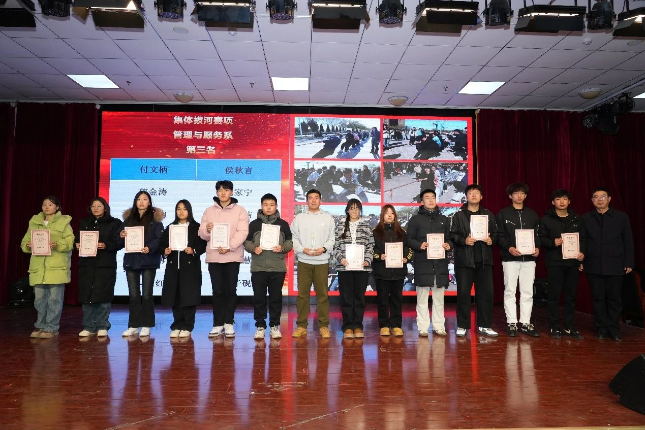 12月27日,米乐在崇德楼三层报告厅举办米乐mile官方网站2024-2025学年第一学期“育才杯”体育竞赛颁奖典礼。院党委副书记、院长王爱国,院党委副书记丁建业,院党委委员、副院长尤彩虹,院党委委员、副院长董刚,院党委委员、组织人事部部长王玉杰出席。大会由基础教学部副主任王娟主持。
