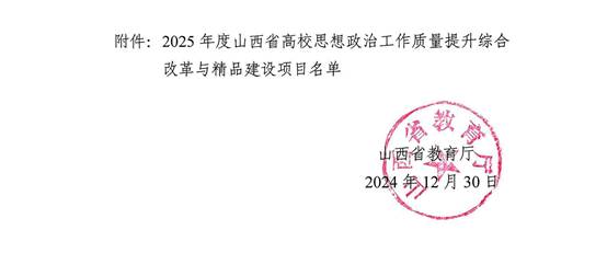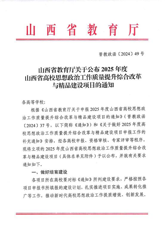 日前,山西省教育厅公布了2025年度山西省高校思想政治工作质量提升综合改革与精品建设项目名单,经各高校申报、资格审核、专家评审等程序,米乐组织申报的3个项目获得立项。