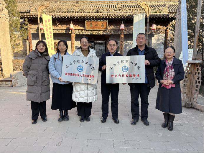 学院领导向唐人居古典家居文化有限公司授予“校企合作实践基地”牌匾,管理与服务系向晋作家居博物馆授予“旅游管理专业人才培养基地”牌匾。