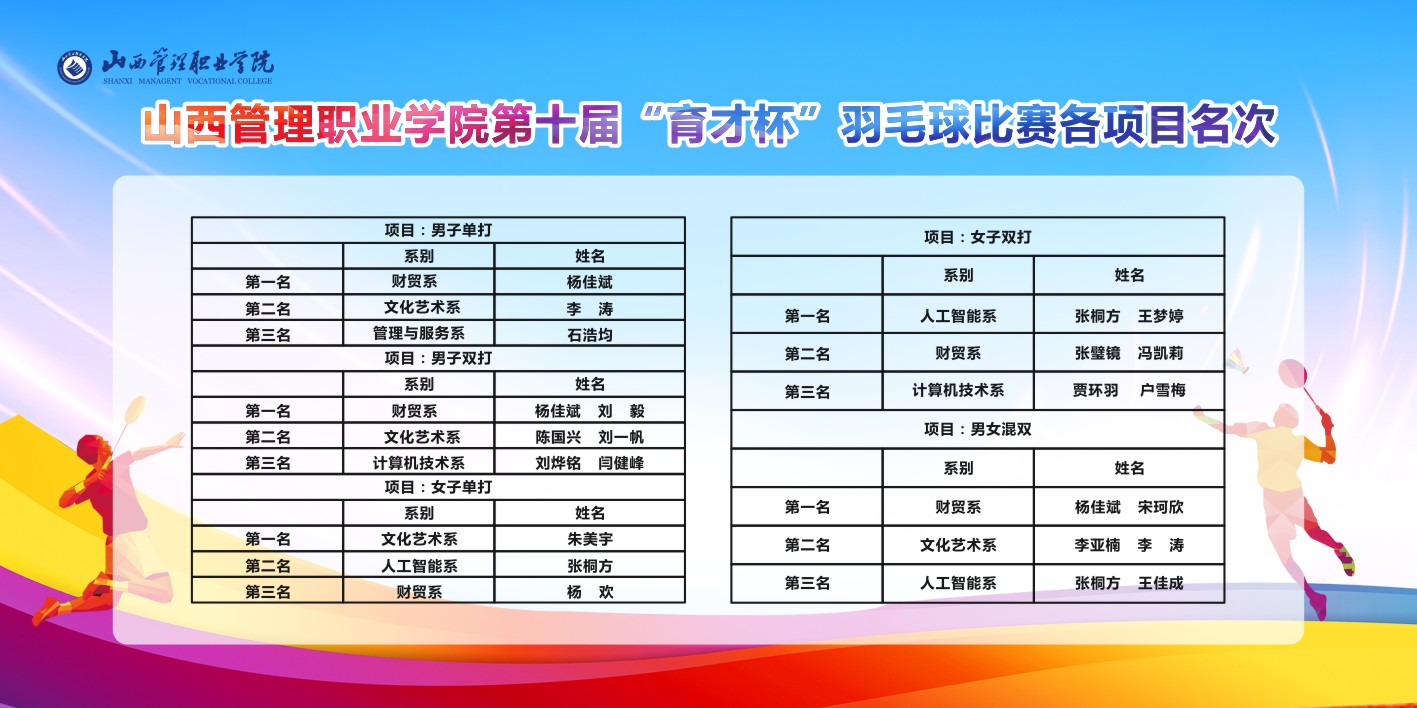 6月10日,米乐2024-2025学年度第2学期院级三项体育赛事完美收官。本学期院级比赛有三项:第十届“育才杯”羽毛球比赛、第七届“育才杯”十一人制足球赛、第十一届“育才杯”五人制篮球赛,以及运动世界校园APP“传承冬奥精神,跑出青春风采”为主题的线上体育锻炼活动。