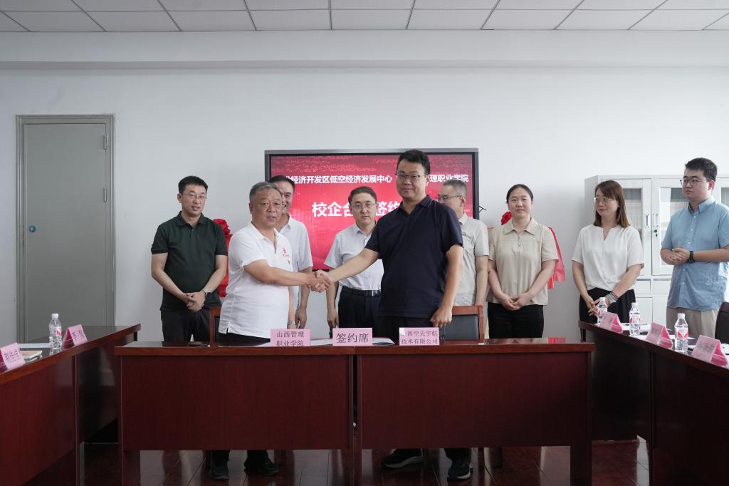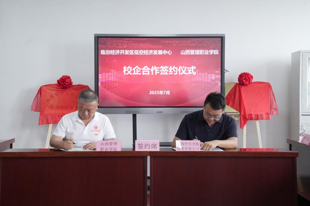7月2日上午,学院与临汾经济开发区低空经济发展中心校企合作签约揭牌仪式在崇德楼1206隆重举行。此次合作标志着双方在产教融合、人才培养、实习就业等多个领域正式开启深度合作模式,为教育链、人才链与产业链、创新链的有机衔接注入了全新动力。