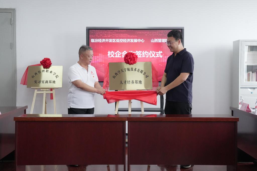 在与会领导和嘉宾的见证下,双方签订了校企合作共建协议书,一同为“米乐mile官方网站实习实训基地”“山西空天宇航技术有限公司人才培养基地”揭牌。揭牌仪式代表着双方合作的正式启动,也代表着双方将在人才培养和产业服务等方面携手共进,共同开创校企合作新局面。