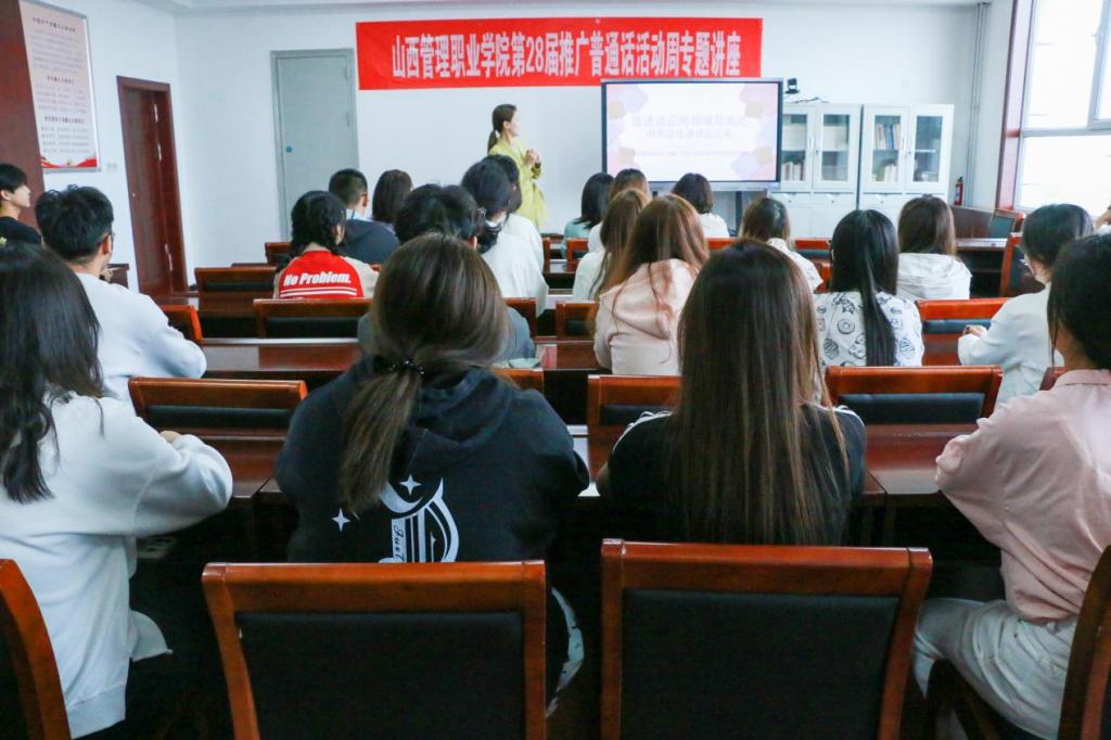 9月19日下午,为扎实开展好米乐第28届推普周活动,引导全院师生持续增强自觉规范使用国家通用语言文字的意识,大力弘扬中华优秀传统文化,树立高度的文化自觉与文化自信,教务教学部邀请临汾广播电视台专业主持人王彤,为米乐广播站和演讲与口才协会及普通话爱好者和院语委办、普通话省测员等相关人员做专题讲座。教务教学部部长赵瑞婷和院团委书记李军峰出席。