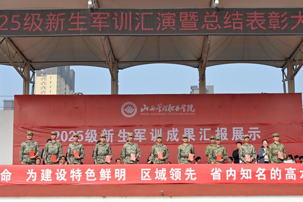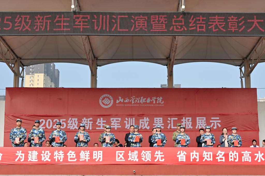 上午9时,全场高唱国歌,随着五星红旗的冉冉升起,2025级新生军训汇演正式拉开帷幕。参加军训的新生军姿挺拔、激情满怀,展示了分列式、队列队形展示、千人军体拳、女子匕首操等多个项目。新生们的每个动作都透出自信与力量,彰显山管学子奋发向前的姿态。