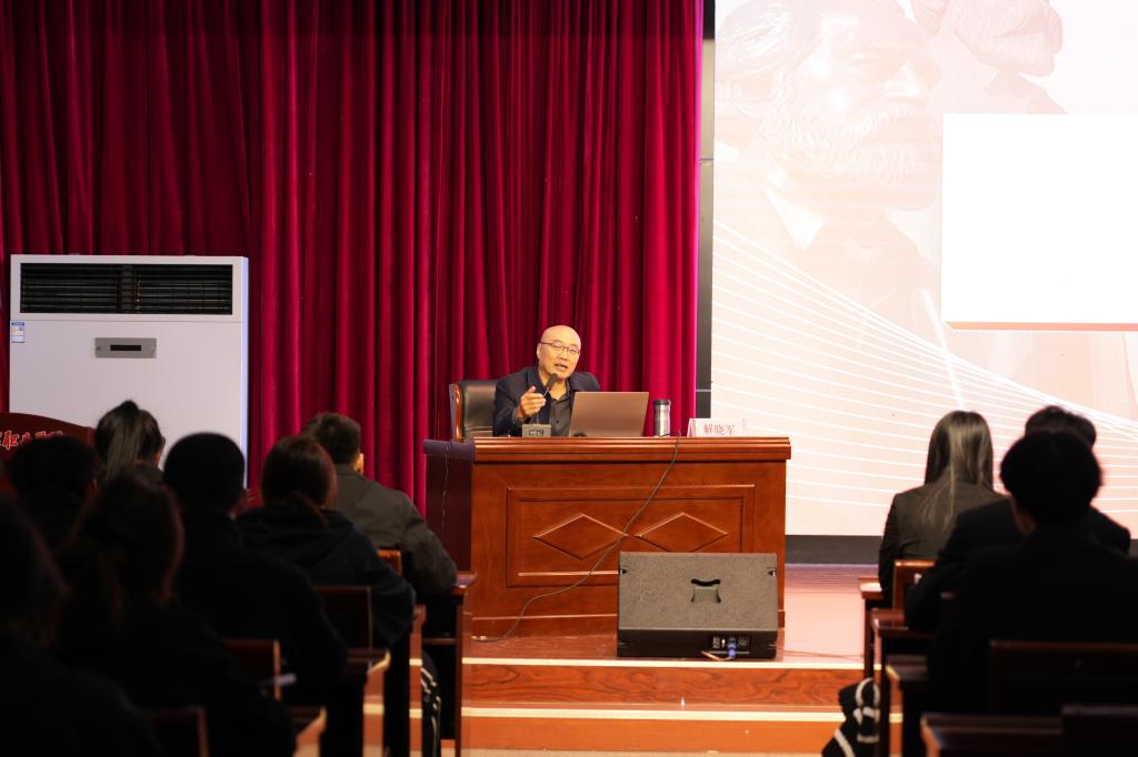 随后思政部党支部书记、主任解晓军为全体学员讲授开班第一课《马克思主义观》,为学员搭建起系统认知马克思主义的思想桥梁。他系统梳理了马克思主义的创立与发展脉络,阐释了马克思主义的鲜明特征及当代价值,还指引青马班学员要学好用好马克思主义,在学思践悟中坚定理想信念,在奋发有为中践行初心使命。