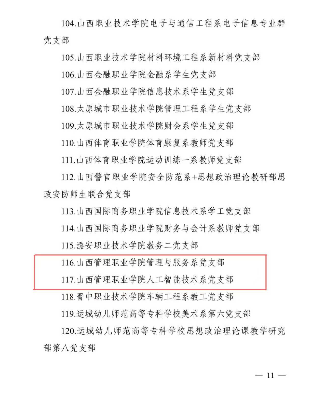 近日,中共山西省委教育工作委员会印发《关于公布第二批全省高校“育人先锋”党建品牌项目名单的通知》,米乐管理与服务系党支部和人工智能技术系党支部成功入选“全省高校党建工作样板支部”创建单位。