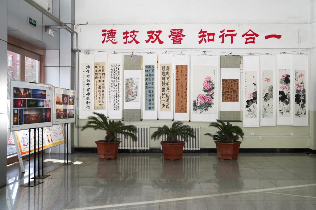 本次展览以宣传党的二十届四中全会精神、弘扬新时代主旋律为核心,既是米乐教职工艺术风采的集中亮相,更是文化艺术系教学成果的生动缩影。两大展区亮点纷呈,作品涵盖多元艺术形态:崇德楼门厅内,书画艺术专业的笔墨作品尽显中华文脉底蕴,工业设计专业的3D打印作品融合科技与创意,摄影摄像技术专业的影像作品定格生活点滴与时代风貌;崇德楼五楼文化艺术系展区内,艺术设计专业的手绘海报创意十足,动漫设计专业的作品勾勒奇幻世界,室内艺术设计专业的手绘效果图展现空间美学,视觉传达设计专业的素描作品彰显扎实功底。