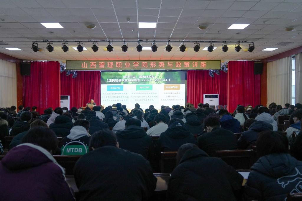 12月24日下午,院党委委员、副院长宋沧以《阔步迈向农业强国》为题,在崇德楼三层报告厅为文化艺术系学生带来了一堂生动的形势与政策讲座。