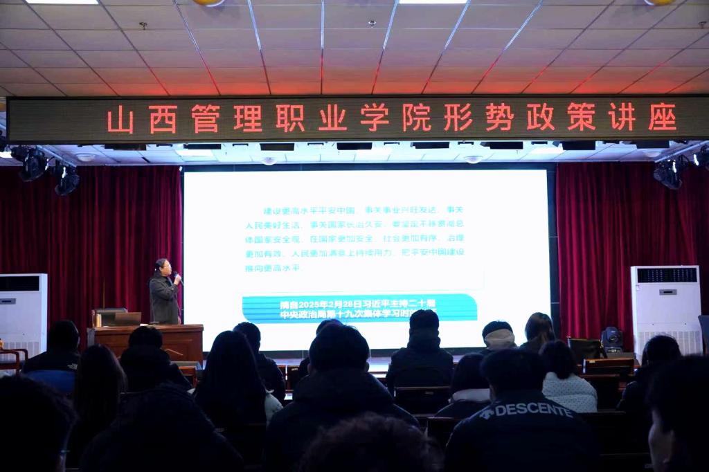 12月26日下午,院党委委员、副院长尤彩虹走进崇德楼三楼报告厅,管理服务系学生带来了一场题为聚焦建设更高水平平安中国的形势与政策讲座。