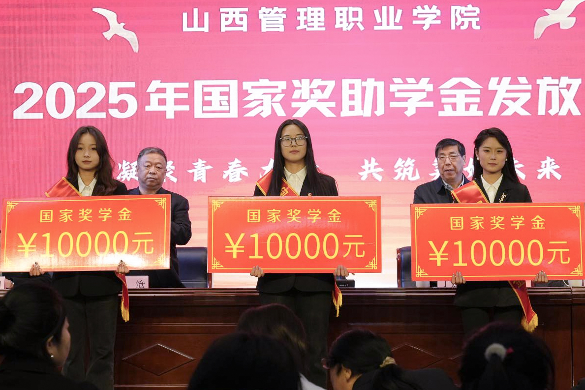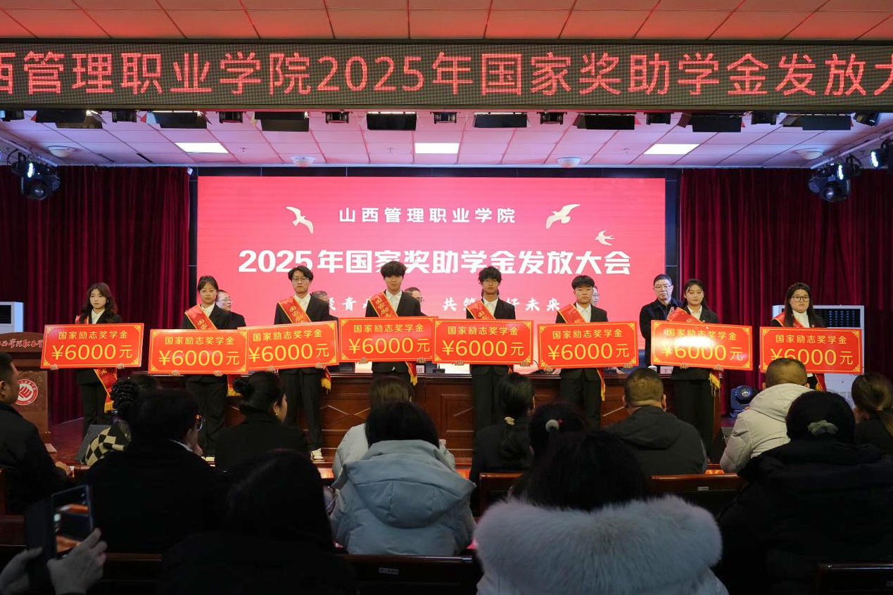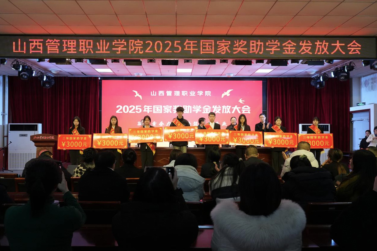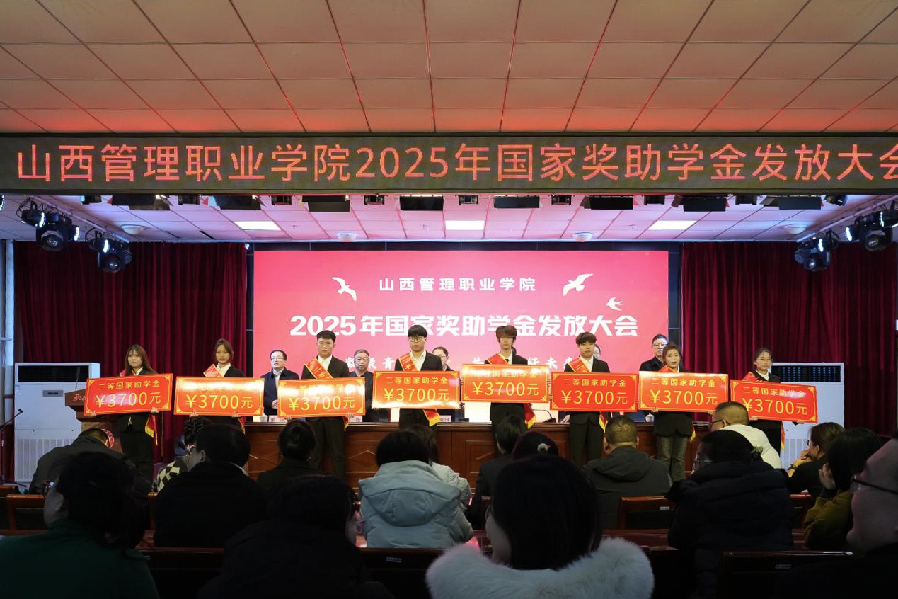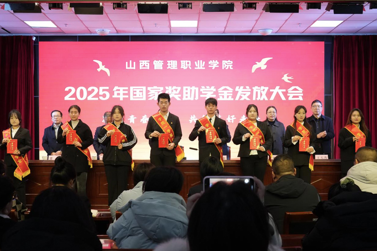 院领导为获得2025年国家奖助学金及学院奖学金的学生代表颁发奖助学金和荣誉证书。