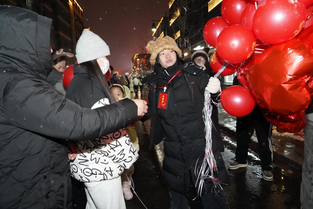 与此同时,我校志愿者们穿梭在活动街道各个角落,主动承担人流引导、秩序维护、咨询答疑等工作。他们以真诚微笑服务市民,用务实行动筑牢活动保障,践行“奉献、友爱、互助、进步”志愿精神,成为跨年夜里一抹温暖亮色。