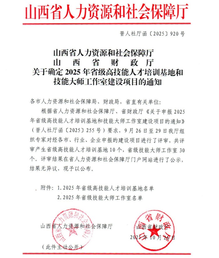 近日,根据山西省人力资源和社会保障厅、财政厅关于2025年省级技能大师工作室建设项目评审结果,米乐人工智能技术系杨帆老师成功获评省级技能大师工作室主持人,认定工种为物联网安装调试员。此项荣誉既是对杨帆老师专业能力的认可,也彰显了学院在物联网领域高技能人才培养方面的扎实成效。