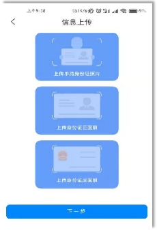 上传信息:身份证正面照、身份证反面照片。