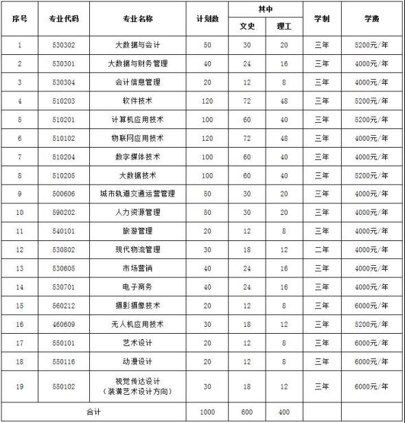 2022年米乐在19个专业单独招生,招生计划数合计为1000人。米乐严格执行省物价部门批准的收费标准。各专业招生计划、学制、收费标准具体如下: