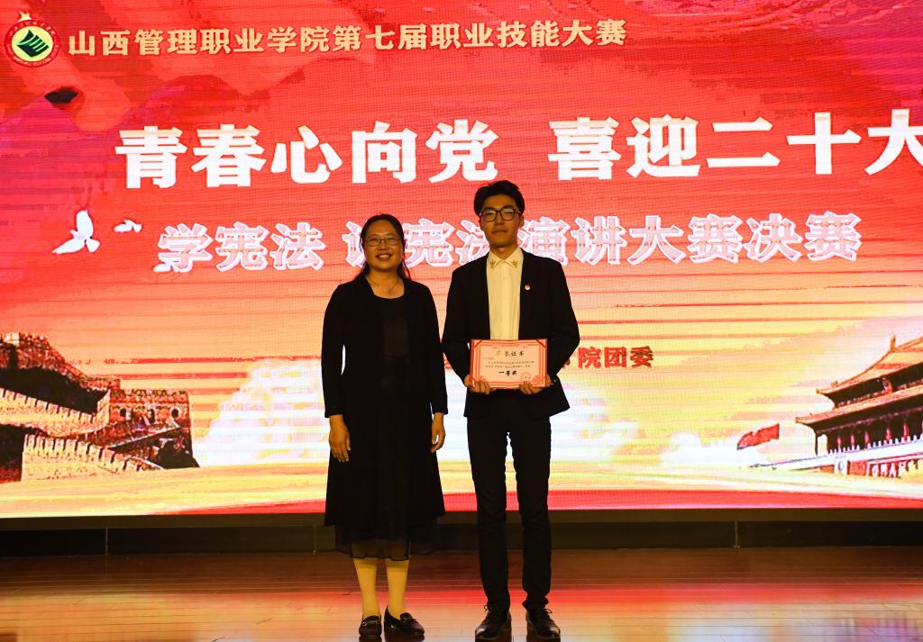 据悉,学宪法讲宪法演讲比赛自今年起纳入学院职业技能大赛规定项目。此次比赛由教务处、基础教学部、院团委联合举办。基础教学部主任秦晶丽说,比赛虽落幕,但师生们学习宣传宪法的热情不能减,让“学宪法,讲宪法”成为校园新风尚,让大学生自觉成为宪法的忠实崇尚者、自觉遵守者、坚定捍卫者,营造良好的法治安全环境,喜迎党的二十大胜利召开。