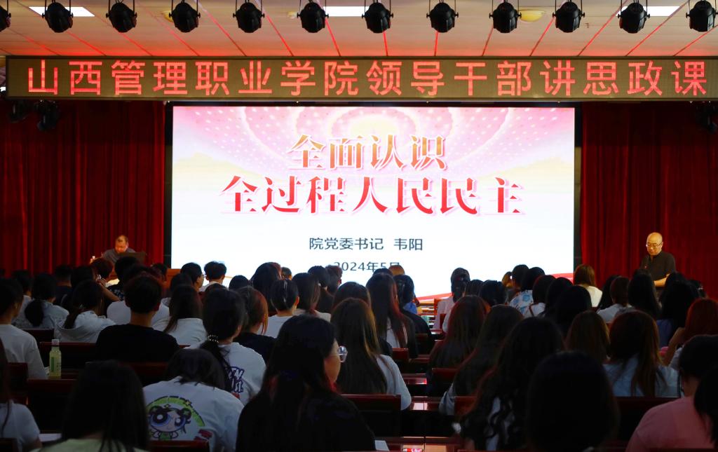 5月27日,院党委书记韦阳以《全面认识全过程人民民主》为题,在崇德楼三楼报告厅为学生作形势与政策专题讲座。