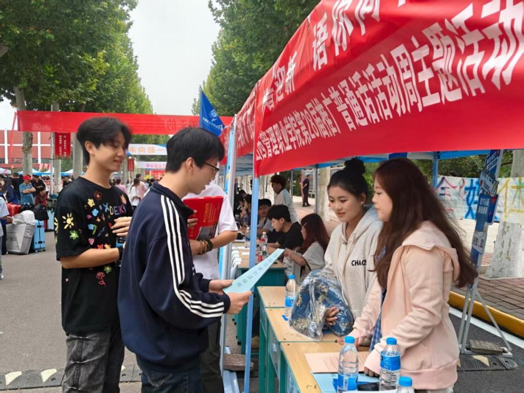 2025年9月15日至21日是第28届全国推广普通话宣传周。9月16日,开学迎新期间,学院在崇德楼前林荫大道举办“推普迎新 语你同行”主题互动宣传活动,吸引百余人参与。2025级新生及家长们参与方言接龙、普通话绕口令挑战、汉字听写擂台等教育实践环节,并获得了教学教学部为此次推普周特别定制的、彰显米乐形象与特点的专有礼品。