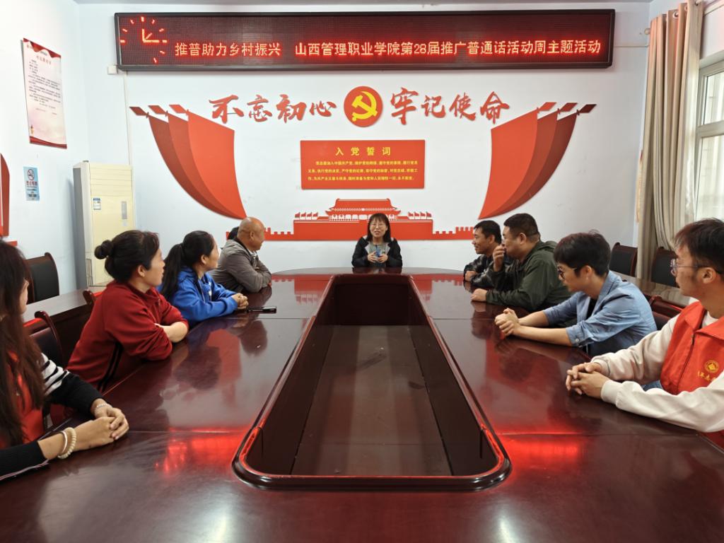 教务教学部和学院驻村工作队联合组织学院省级测试员和院广播站志愿者,进入南坡村进行推普宣传和培训。活动聚焦农村地区青壮年人口,多渠道、多形式开展面向乡镇及以下公职人员、公共服务行业人员和其他农村人口的普通话培训。今后还将结合“经典润乡土”等活动,开展红色经典诗文诵读展演、“推普助力乡村振兴”等社会实践志愿服务活动,加强国家通用语言文字教育,提高普通话普及率及普及水平。