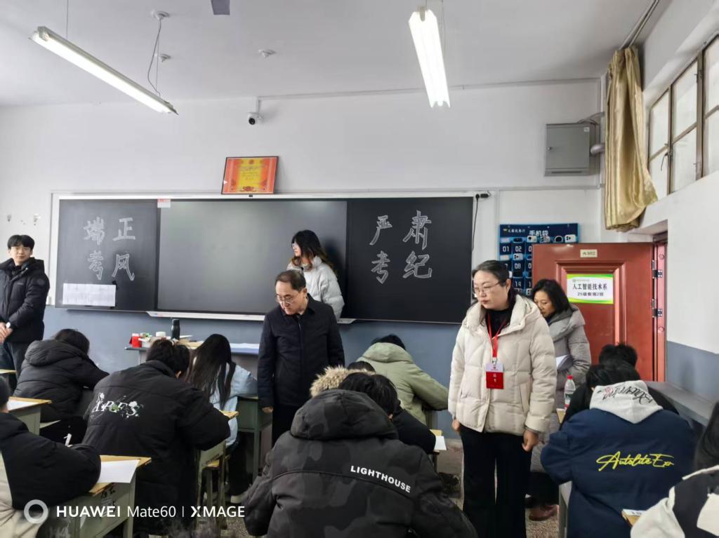 1月2日至1月4日,我院迎来2025-2026学年第一学期期末考试。为切实保障期末考试工作规范有序推进,严肃考风考纪,筑牢公平公正的考试防线,院党委副书记、院长王爱国,副院长尤彩虹亲自带队,率教务教学部、教学督导组及相关职能部门负责人组成巡考小组,深入全院各考场开展期末巡考督查工作。