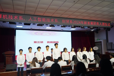 6月12日中午,人工智能技术系、计算机技术系、财贸系在崇德楼三层报告厅举行2024年新发展团员入团仪式。