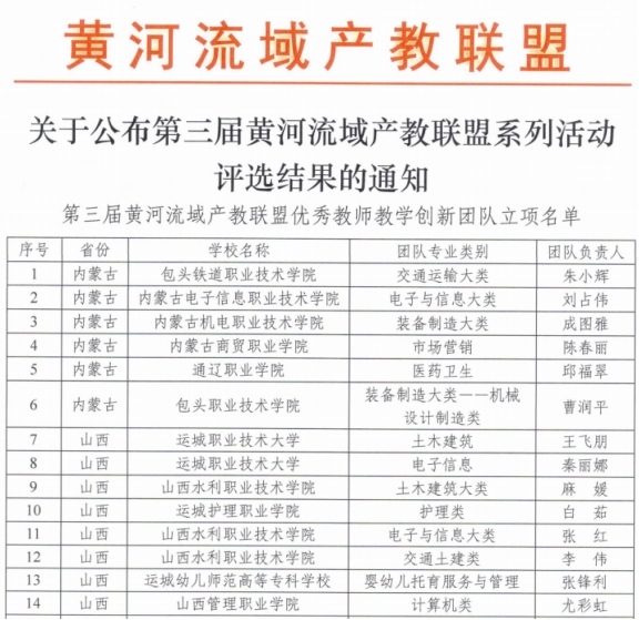 1、第三届黄河流域产教联盟“优秀教师教学创新团队”