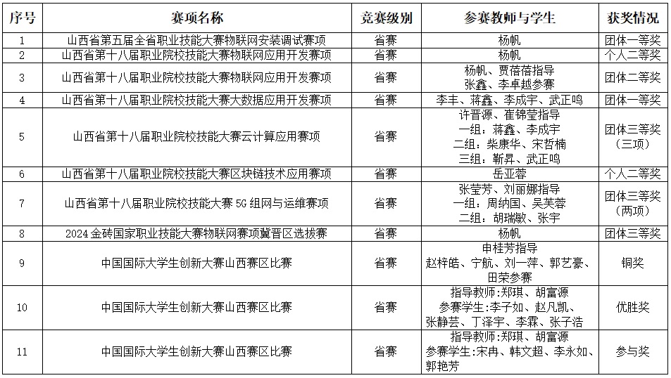 近日,由山西省教育厅等5部门举办的山西省第十八届职业院校技能大赛比赛结果发布,我系全年在各项赛事中屡获佳绩,共斩获一等奖2项、二等奖3项、三等奖6项、铜奖1项,充分展现了米乐师生精湛的专业技能和良好的精神风貌。
