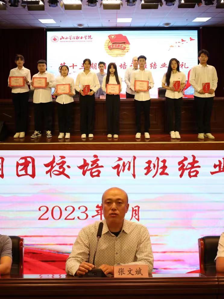 典礼在庄严的《共青团团歌》声中开始。典礼上,对在团校学习期间表现突出的17名“优秀学员”进行了表彰。典礼最后,院团委书记张文斌作总结讲话,他勉励学员坚定理想信念,练就过硬本领,锤炼优良学风作风,把在团校学到的理念和方法落实到日常学习工作中去,以青春梦托起伟大复兴的中国梦。