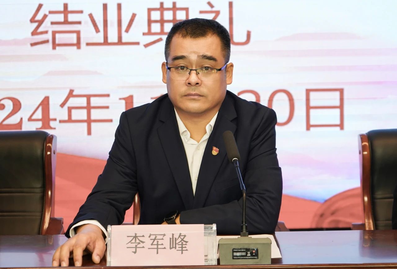 仪式最后,院团委副书记李军峰作总结讲话,他首先向顺利结业的学员们表示祝贺,并希望学员们将团校所学的理论知识继续深化理解,并运用到实际行动中。在日常的学习和生活中,积极传播团的思想,关心国家大事、关注社会热点;积极引导同学们树立正确的世界观、人生观、价值观;积极参与学校的各项活动,为校园文化建设贡献更多的智慧和力量。最后勉励大家以团校结业为新的起点,不忘初心,砥砺前行,在今后的学习和生活中,用实际行动书写精彩篇章,为共青团事业增光添彩!
